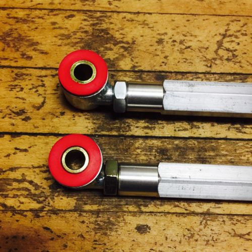 The camber kit can straighten the wheels by dialing out the negative camber, something you can't do with the stock suspension. They are also great for race days where changing from street tires to drag or race tires where the camber need to be adjusted on the spot. You can manual dial the wheel in by adjusting the rod in or out.