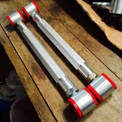Up for sale is a pair of adjustable rear camber kit for the SL-class R107 and R129 Mercedes Benz models. These kits are fabricate locally here in the United States. The rod ends are stainless steel to prevent rust with Energy Suspension poly bushings and stainless steel inserts. The tie rod sleeves are brushed 6061-T6 aluminum drawn tubing for strength, durability, and precise fit. These are only for cars without the hydraulic levering system.