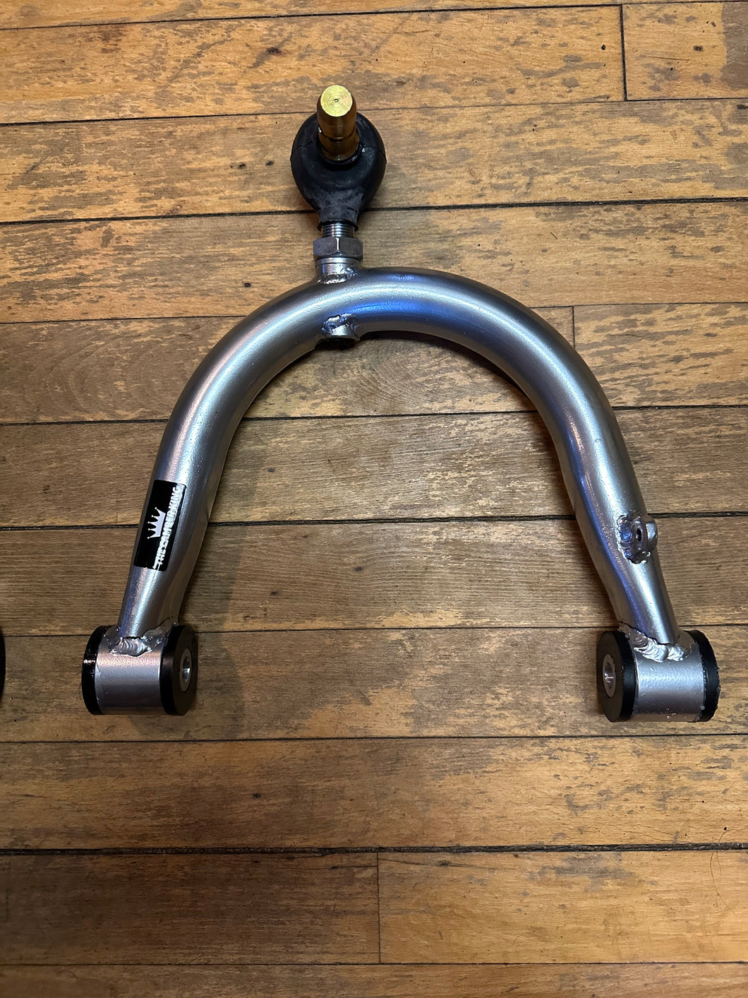 Fifth generation Jeep Grand Cherokee 2021 - present adjustable front camber arms. These kits are fabricate here in the United States. The curve steel rod is cold bend and milled on both ends to be weld to the pipe (barends) that house the Energy Suspension bushings. The heim joint is chromoly coupled with the zinc plated steel pin.