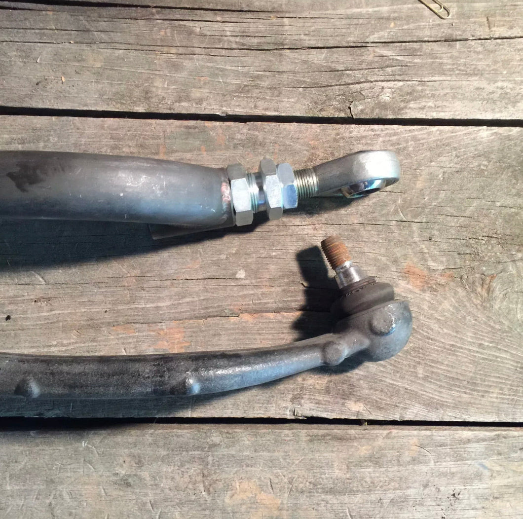 The arm is fabricate here locally and it made of cold bend steel welded on steel pipe with Energy Suspension Polyurethane bushings at one end and a ball joint with custom cut sleeves for the adjustable end.